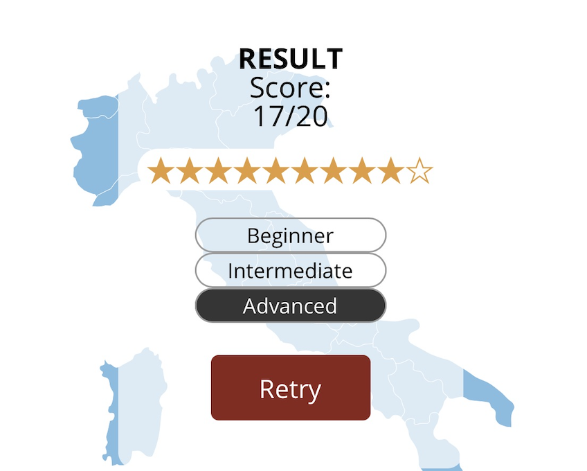 Can you tell which region each of these Italian wines is from? Click the “Start” button and check it.